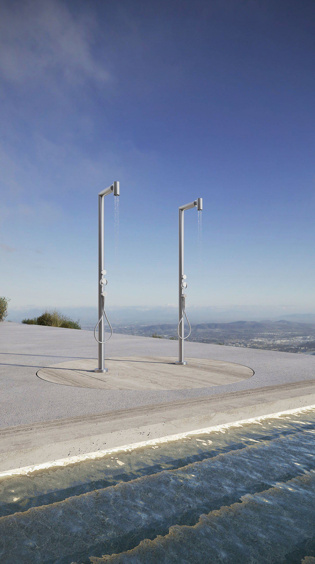 En la cubierta principal hay instaladas dos duchas exteriores, que ofrecen al propietario y a los invitados un lugar cómodo para quitarse el cloro de la piscina o refrescarse rápidamente al sol.
