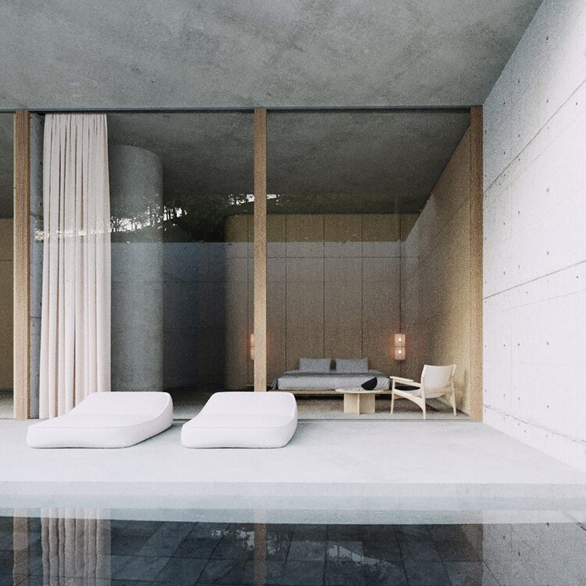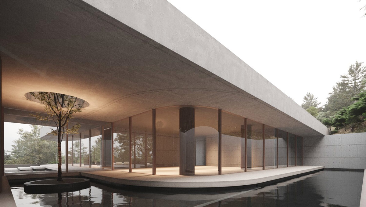 Los planos de hormigón del techo difuminan los límites entre el espacio interior y el exterior.