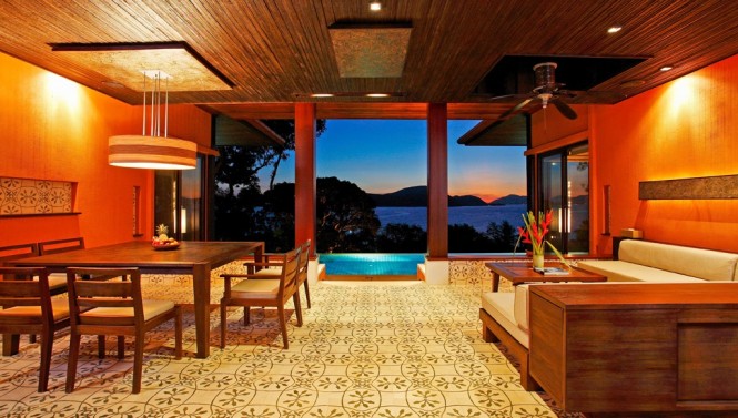 Cuarenta acres de exuberante entorno tropical proporcionan la máxima privacidad a los habitantes de estas villas, y enclavadas en lo alto del Cabo Panwa, sobre una de las costas más impresionantes del mundo, las casas de vacaciones ofrecen unas vistas impresionantes del extremo sureste de Phuket.