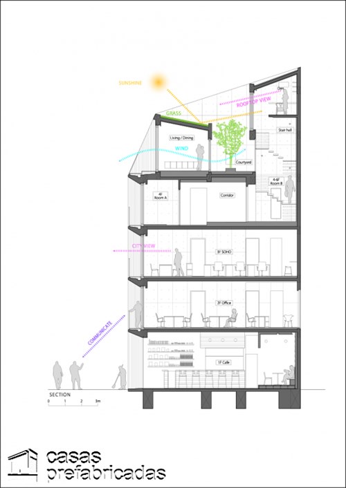 Compleja muestra en donde se ha tratado de crear un sitio que favorece al dueño, la verdad que no hay mejor idea que ofrecer todos los posibles usos de los edificios en uno solo.